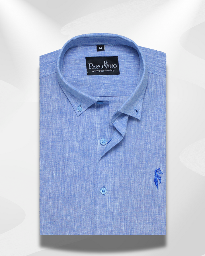 Crafted from 100% pure linen, this light blue shirt is breathable, lightweight, and perfect for warm weather. Featuring PASO FINO engraved buttons, a button-down collar, and a subtle chest insignia, it blends comfort with refined style. Ideal for pairing with chinos, jeans, or tailored trousers.