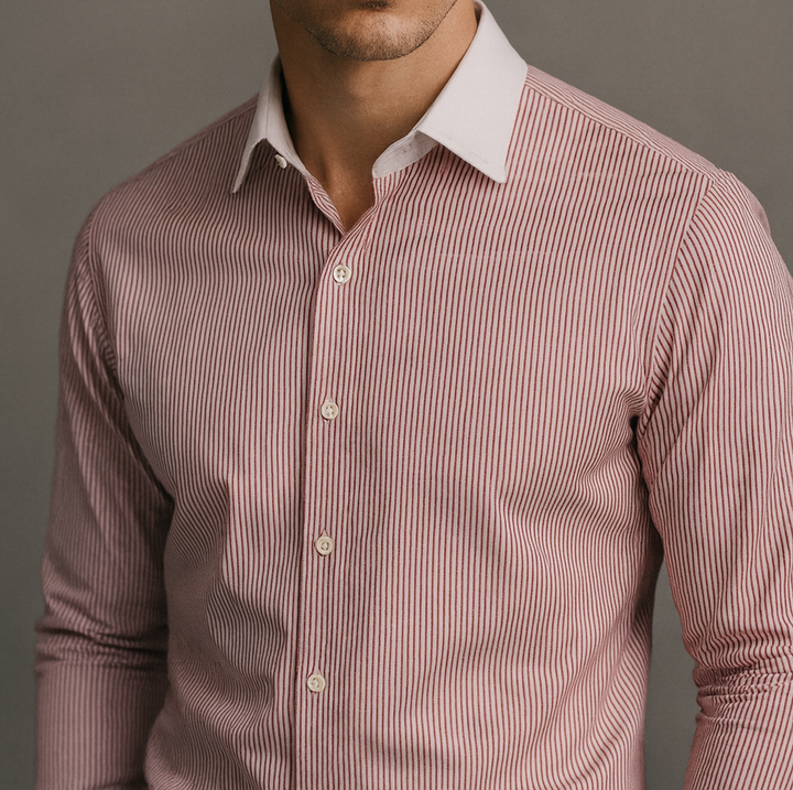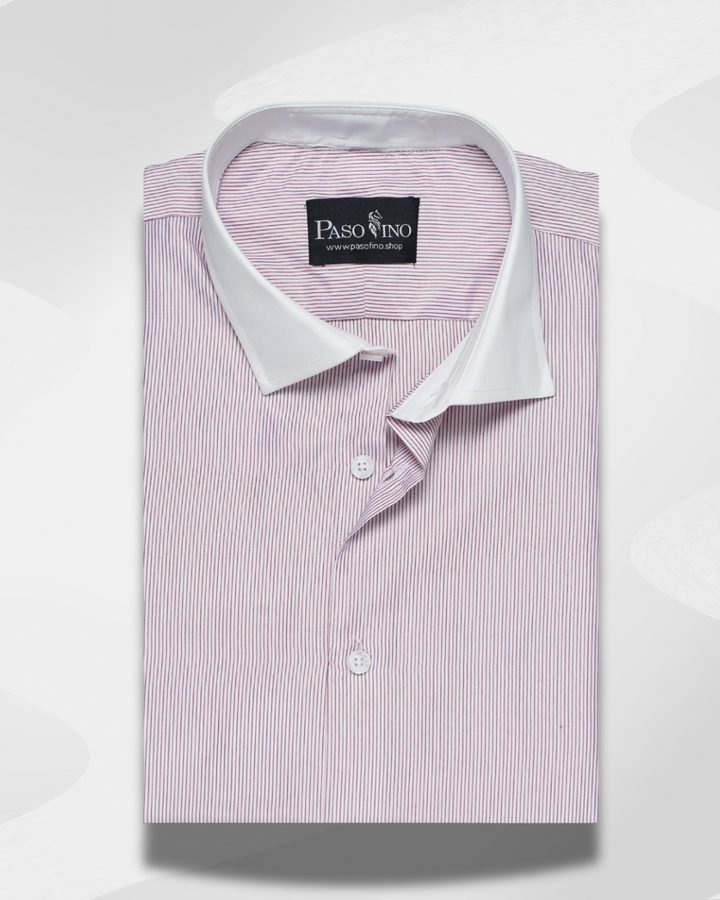 Make a bold yet refined statement with the Crimson Stripe Contrast Collar Shirt, tailored from 100% premium cotton for breathable comfort and an elegant finish. The fine crimson stripes are paired with a crisp white collar, creating a striking contrast that elevates your style. Finished with PASO FINO engraved buttons and a modern tailored fit, this shirt is designed for men who appreciate timeless sophistication with a contemporary edge.