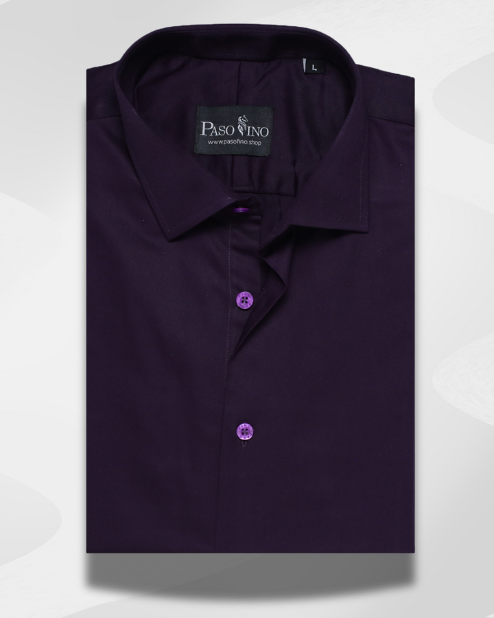 Make a bold statement with the Imperial Purple Cotton Shirt, designed for those who value elegance with a daring edge. Crafted from premium cotton, it offers breathable comfort and a smooth finish, while the rich deep purple shade adds a regal sophistication. The shirt is elevated with engraved PASO FINO buttons in a matching purple tone, ensuring a refined yet distinctive look. Perfect for evening events, formal gatherings, or when you want to stand out with confidence.