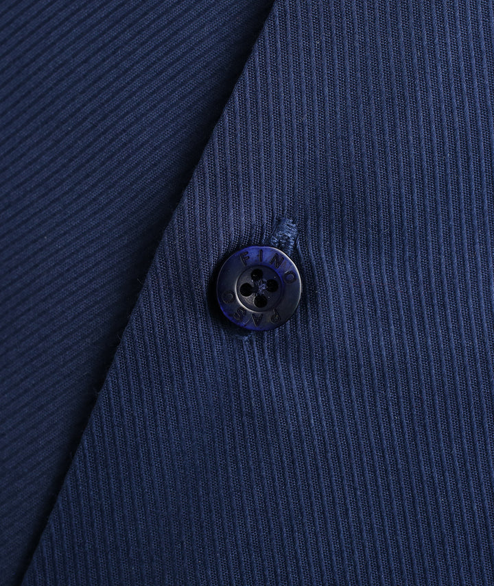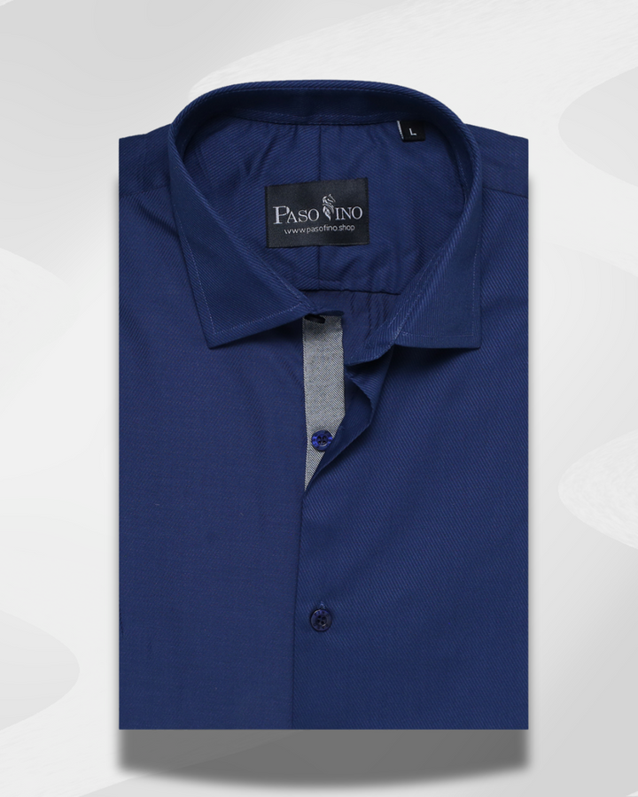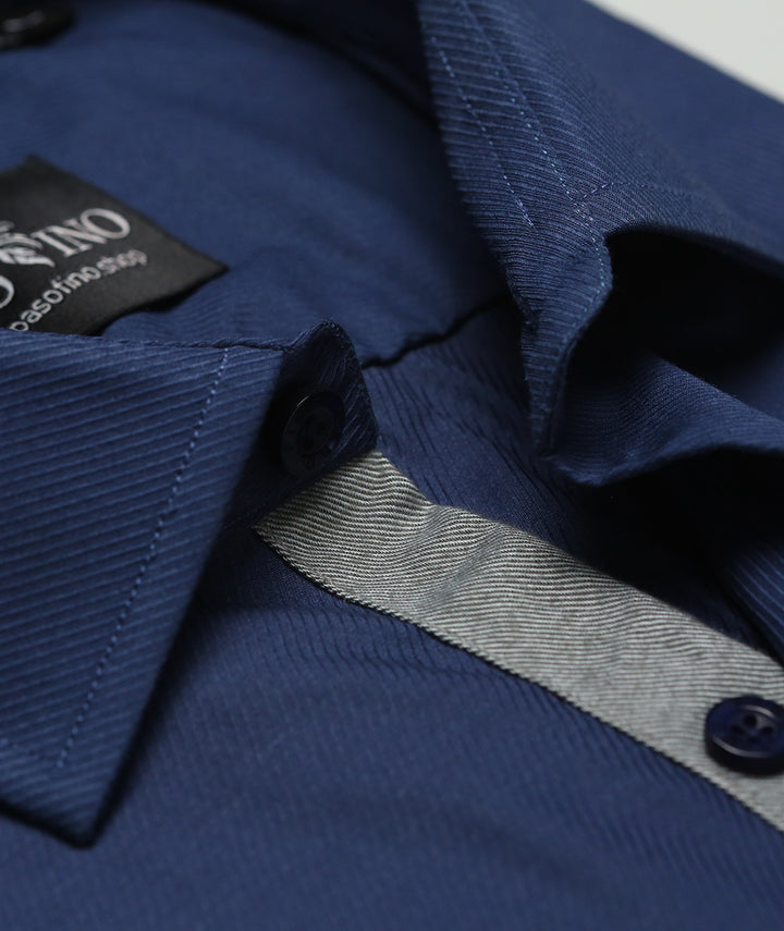 Elevate your wardrobe with the Navy Textured Contrast Shirt, a refined blend of style and comfort. Made from premium cotton with a distinctive textured weave, this shirt offers a rich look and breathable comfort. The subtle grey inner placket detailing adds a modern contrast, making it stand out from standard designs. Finished with engraved PASO FINO buttons, this shirt is crafted for men who value sophistication with a touch of uniqueness.