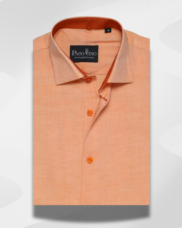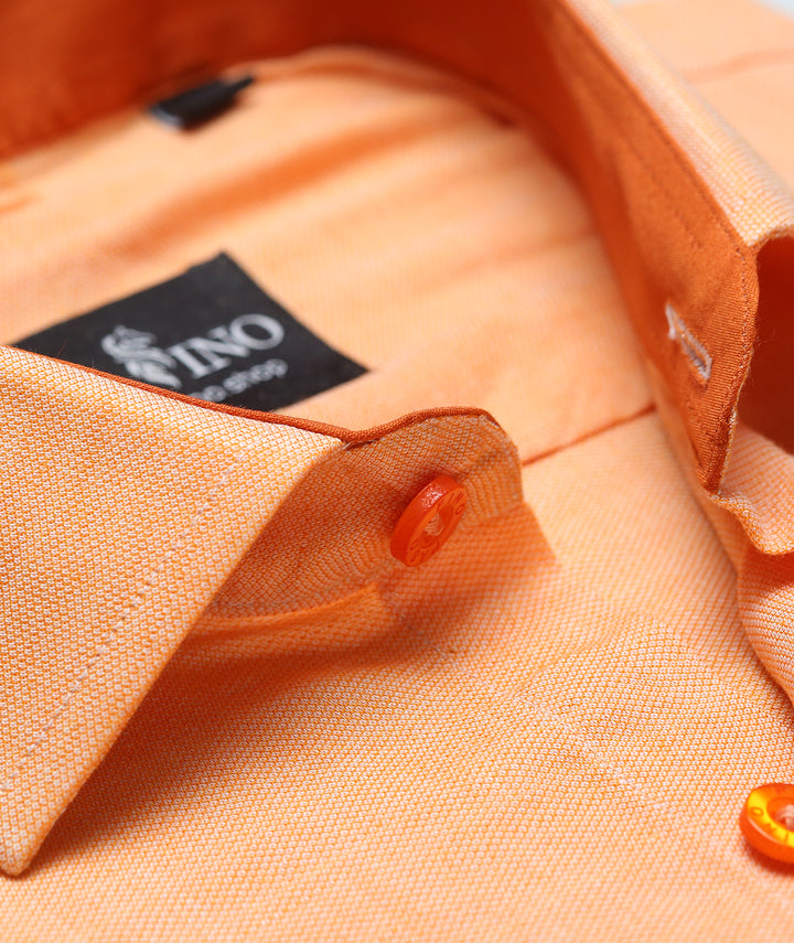 Brighten your wardrobe with this orange cotton-polyester shirt, designed for all-day comfort and durability. The fine blended fabric offers a smooth, lightweight feel with added resilience, while the PASO FINO engraved buttons and modern tailored fit give it a polished edge. A versatile choice that transitions effortlessly from casual outings to semi-formal occasions.
