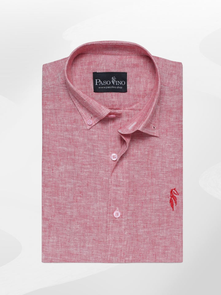 Add a refined touch to your summer wardrobe with this Red linen shirt, crafted from 100% pure linen for natural breathability and comfort. Featuring a subtle checkered weave, PASO FINO engraved buttons, and a modern tailored fit, it blends elegance with everyday ease. Perfect for both casual wear and smart summer styling.