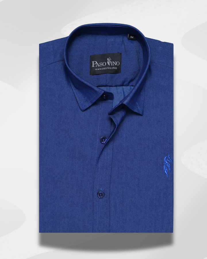 The Royal Sapphire Cotton Shirt embodies sophistication with its rich deep-blue tone and refined finish. Crafted from premium cotton fabric, it offers breathability, comfort, and a smooth texture that elevates your style for both formal and semi-formal occasions. The embroidered PASO FINO insignia on the chest adds a subtle mark of distinction, while engraved buttons complete the premium detailing.
