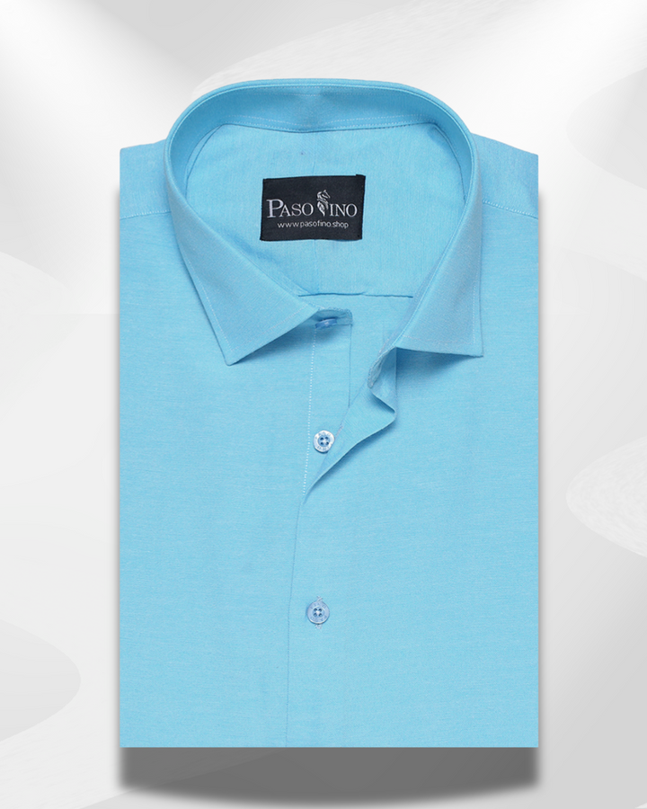 Stay fresh and stylish with this sky blue cotton shirt, crafted from pure cotton for natural breathability and comfort. Designed in a modern tailored fit with lightweight texture and PASO FINO engraved buttons, it’s perfect for warm-weather elegance—ideal for both casual outings and smart summer looks.